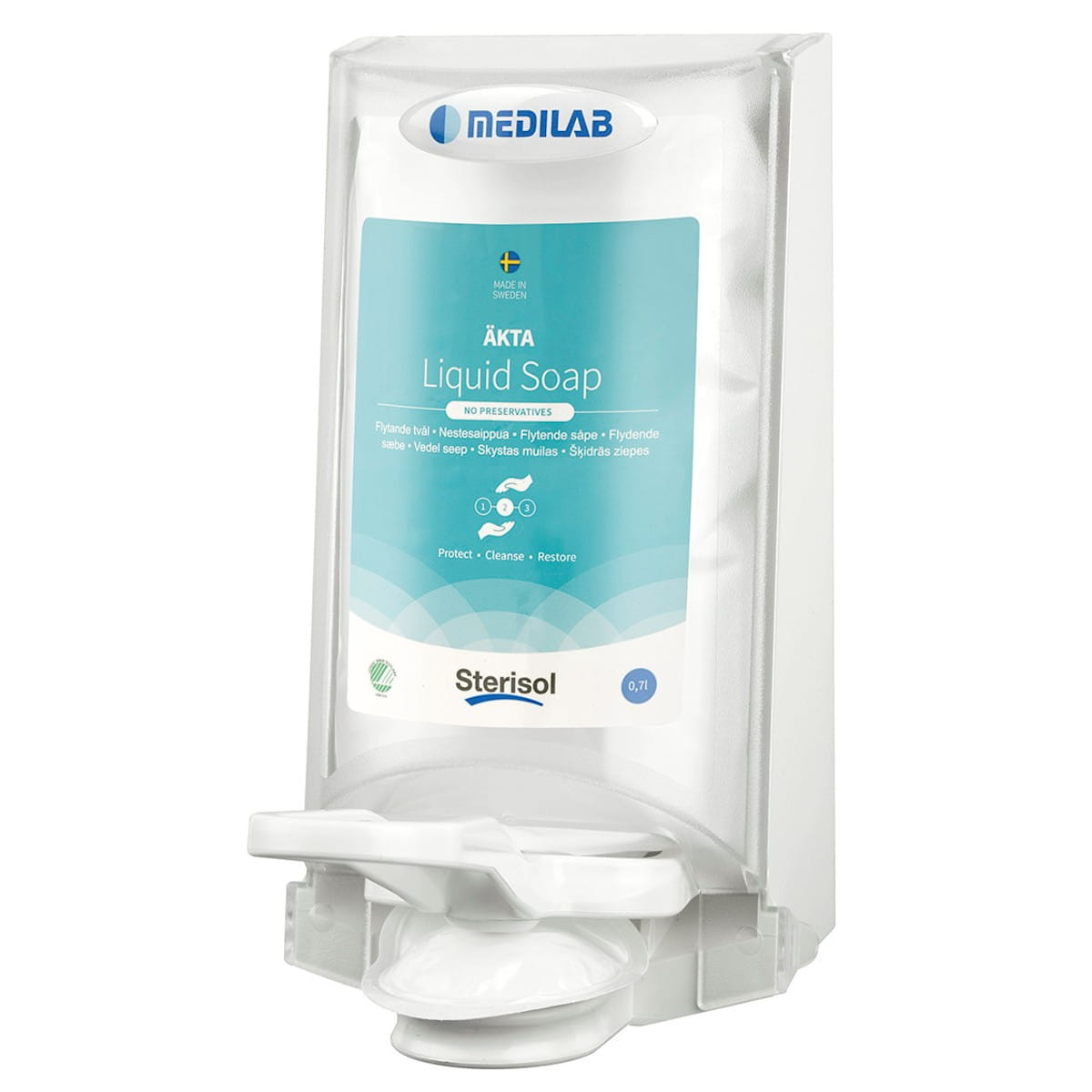 Sterisol Akta Liquid Soap firmy Medilab to wysokiej jakości i wydajności sterylne syntetyczne mydło w płynie na bazie naturalnych surowców przeznaczone do higienicznego i chirurgicznego mycia rąk i ciała. Sterisol Akta Liquid Soap spełnia najwyższe standardy higieniczne i jakościowe stawiane preparatom, których zadaniem jest zapobieganie zakażeniom krzyżowym. Emulsja nie zawiera substancji konserwujących i bakteriobójczych nie pozostawia więc obciążających skórę substancji chemicznych. Mydło jest delikatne, polecane osobom o skórze bardzo wrażliwej i skłonnej do alergii, jak również do mycia noworodków ponieważ zawiera substancje pielęgnujące skórę podczas mycia. Produkt jest także idealny do zastosowania w placówkach służby zdrowia – szpitalach, blokach operacyjnych, gabinetach zabiegowych, stomatologicznych, chirurgicznych, przychodniach, salonach kosmetycznych, placówkach opieki społecznej i innych obszarach gospodarki, w których wymagane są wysokie standardy higieniczne. Emulsja została wzbogacona o dwie substancje nawilżające, w tym humektantu i emolientu, które chronią skórę rąk przed wysuszeniem.