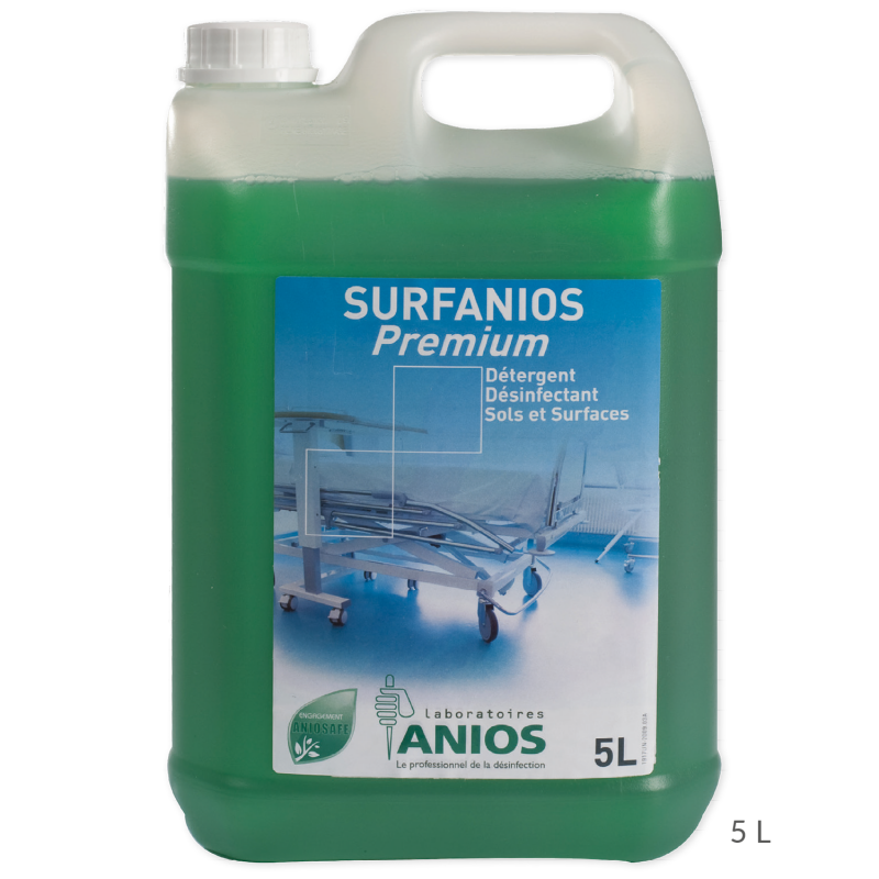 Surfanios Premium, ANIOS, ECOLAB, dezynfekcja powierzchni, środek dezynfekujący, koncentrat do mycia, preparat medyczny, dezynfekcja podłóg, środki czystości medyczne, płyn do dezynfekcji 5l.